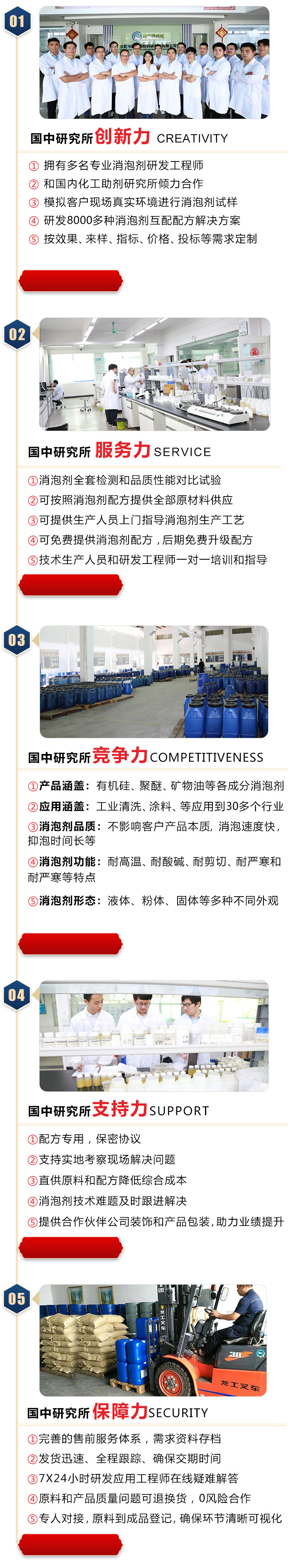東莞市國中新材料研究所有限公司是一家集科研、生產(chǎn)、銷售、服務于一體的新材料研究所,擁有3000平方的研發(fā)基地,擁有一支專業(yè)消泡劑研究人員組成的研發(fā)團隊。成立以來一直致力于消泡劑原材料、成品的開發(fā)以及客戶技術服務,長期與國內(nèi)研究所合作研發(fā)消泡劑配方。